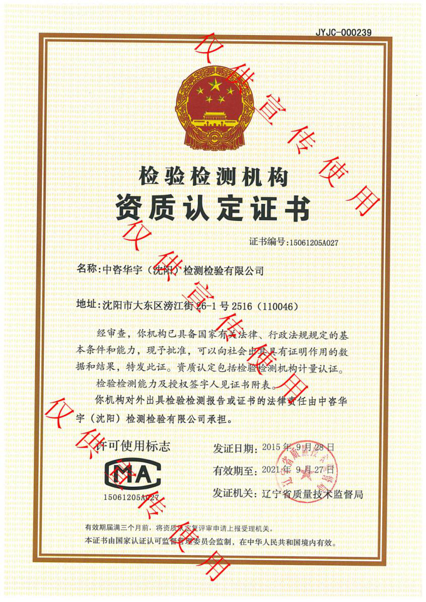 業(yè)務(wù)擴(kuò)展 遼寧中咨華宇環(huán)保技術(shù)有限公司于2015年投資成立了中咨華宇(沈陽(yáng))檢測(cè)檢驗(yàn)有限公司。通過(guò)前期實(shí)驗(yàn)室的規(guī)劃布局,購(gòu)置檢驗(yàn)儀器設(shè)備、引進(jìn)高端人才、派遣人員學(xué)習(xí)培訓(xùn)等籌備工作后在2015年9月28日中咨華宇(沈陽(yáng))檢測(cè)檢驗(yàn)有限公司取得了由遼寧省質(zhì)量技術(shù)監(jiān)督局頒發(fā)的檢測(cè)檢驗(yàn)機(jī)構(gòu)資質(zhì)認(rèn)定證書(shū)(CMA證書(shū)),為公司在原有業(yè)務(wù)的基礎(chǔ)上開(kāi)辟了新的環(huán)境檢測(cè)服務(wù),從原有的咨詢領(lǐng)域拓展到了驗(yàn)收監(jiān)測(cè)、污染源監(jiān)測(cè)領(lǐng)域等,為企業(yè)提供多元化、一站式服務(wù)。我們本著“科學(xué)、公正、準(zhǔn)確、及時(shí)”的服務(wù)理念,想客戶之所想、急客戶之所急的態(tài)度在日后的工作中,為國(guó)家的環(huán)保事業(yè)貢獻(xiàn)一份力量!