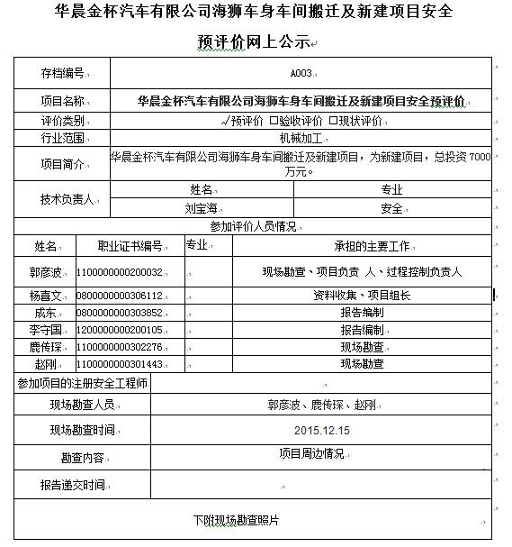 沈陽華晨金杯汽車有限公司海獅車身車間搬遷及